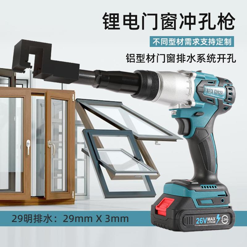 铝合金门窗锂电排水冲孔机气动打孔枪水槽铣孔铝型材3*29开孔器
