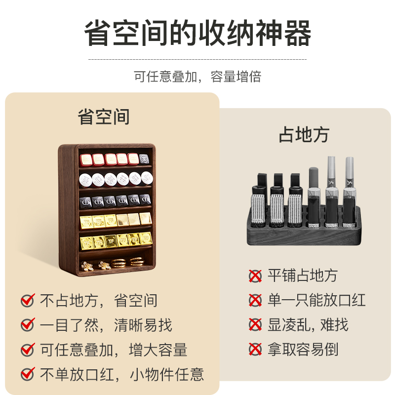 木町口红收纳盒实木梳妆台桌面化妆品唇釉粉饼化妆刷化妆品置物架