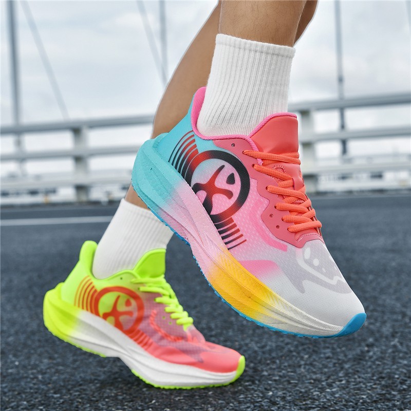 马拉松慢跑鞋超轻爆米花底真碳板跑步鞋潮流男女学生款洋气情侣鞋