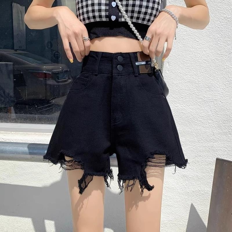 韩国黑色牛仔短裤女夏季2025新款ins潮大码胖mm热裤高腰a字阔腿裤