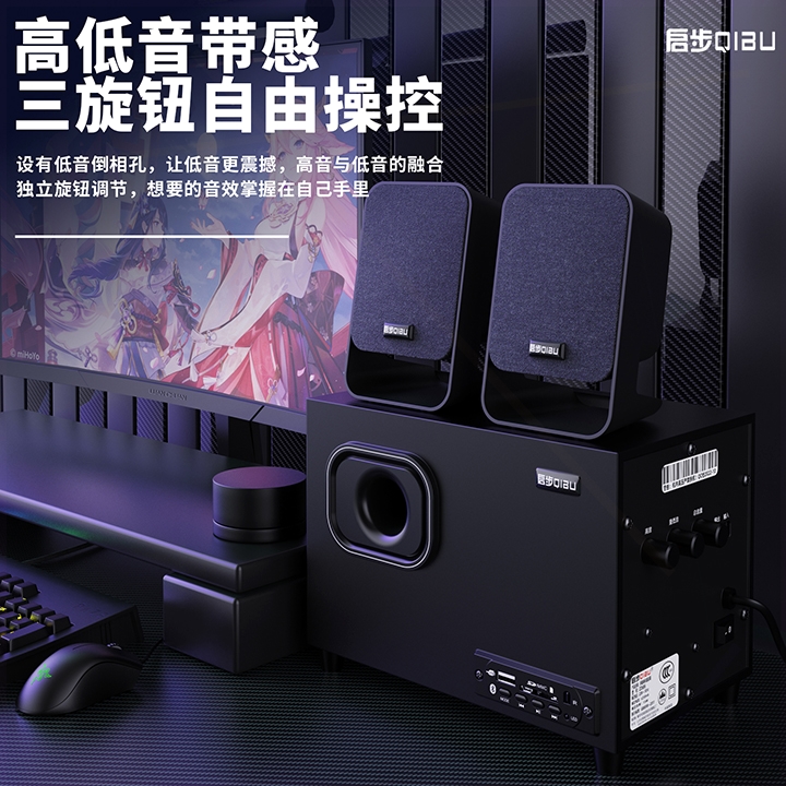 台式笔记本电脑有源音箱重低音炮26W大功率K歌蓝牙插卡插优盘