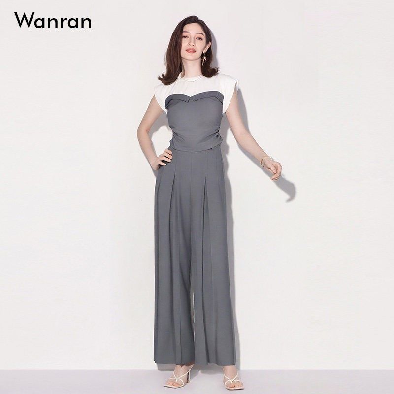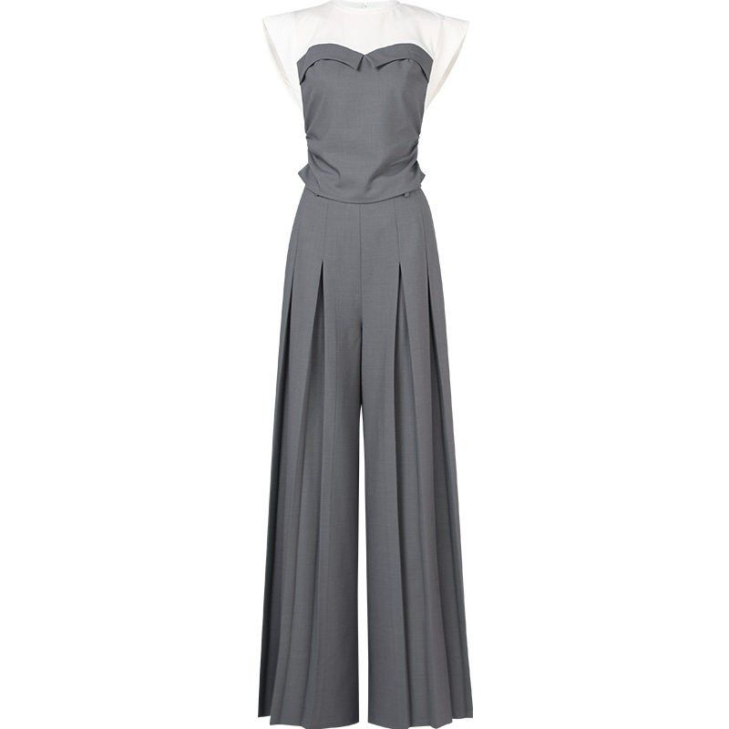2025夏季新款女装时尚撞色针织抹胸上衣高腰阔腿裤裤子套装潮