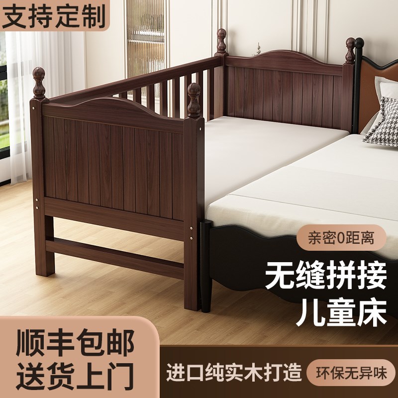 拼接床婴儿实木定制小床可升降大床床边加宽带护栏大人宝宝儿童床