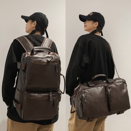 皮质双肩包潮牌百搭男士电脑背包多功能单肩包大学生书包女旅行包