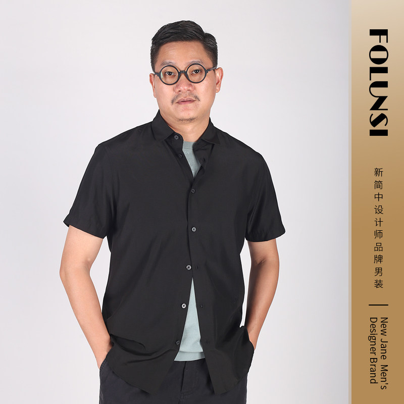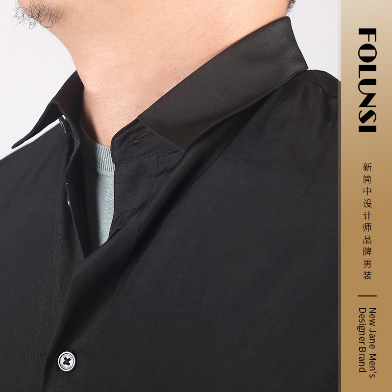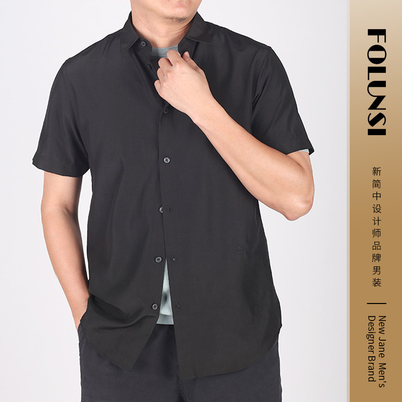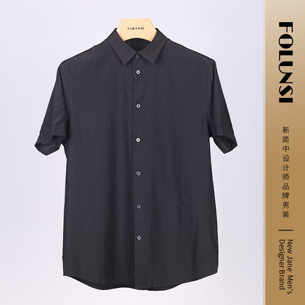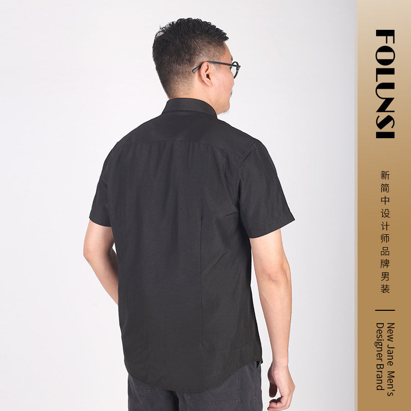佛伦斯folunsi夏季短袖衬衫男士商务休闲黑色修身衬衣潮半袖翻领