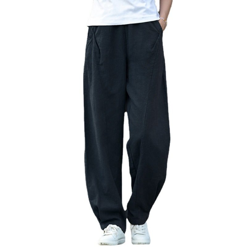 棉麻裤子女春秋新款女装苎麻垂感复古宽松百搭灯笼裤松紧腰休闲裤