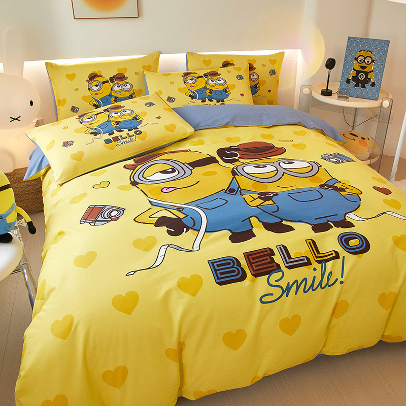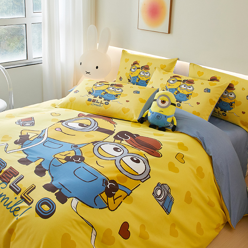 纯棉四件套卡通小黄人男生可爱女