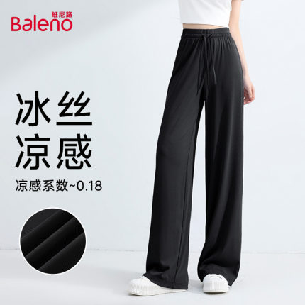 班尼路冰丝阔腿裤女2025年夏季新款宽松休闲直筒裤黑色防蚊裤子N