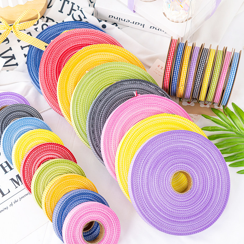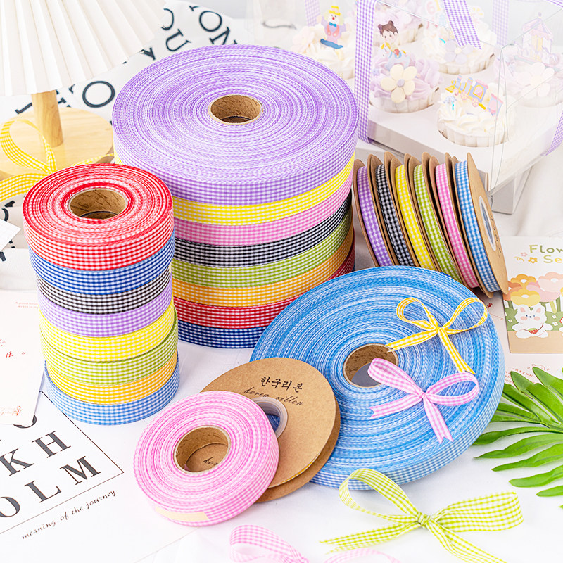 网红清新格纹丝带烘焙蛋糕饼干礼物鲜花包装diy双面装饰格子彩带