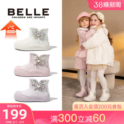 百丽童鞋女童公主雪地靴25秋冬新加绒棉靴女孩保暖儿童棉鞋2-6岁