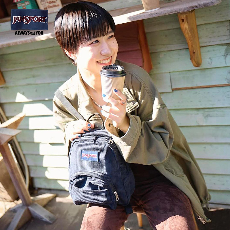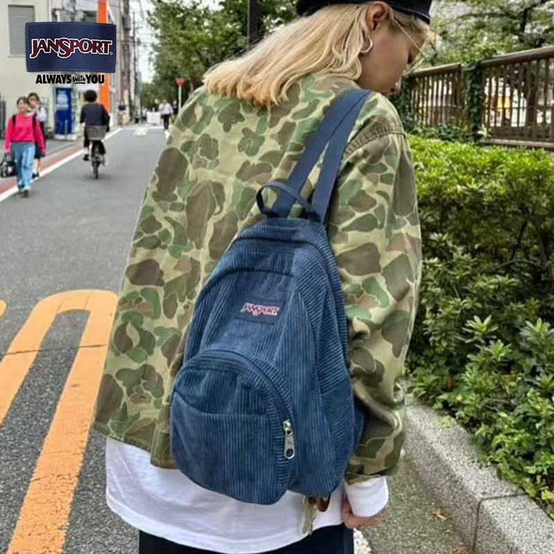 JanSport迷你灯芯绒高颜值女轻便旅游通勤双肩女孩经典黑小型背包
