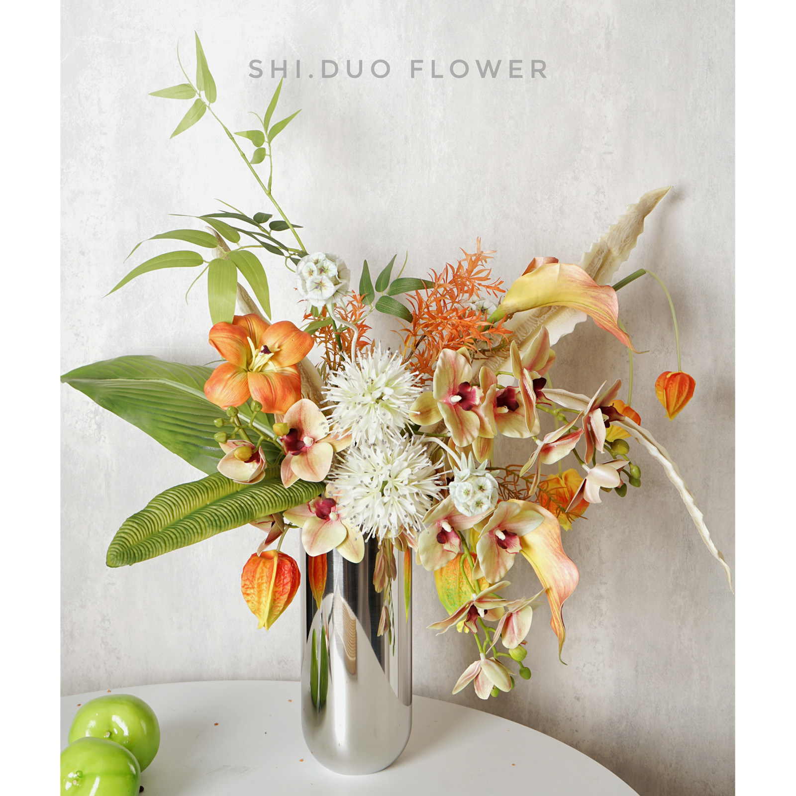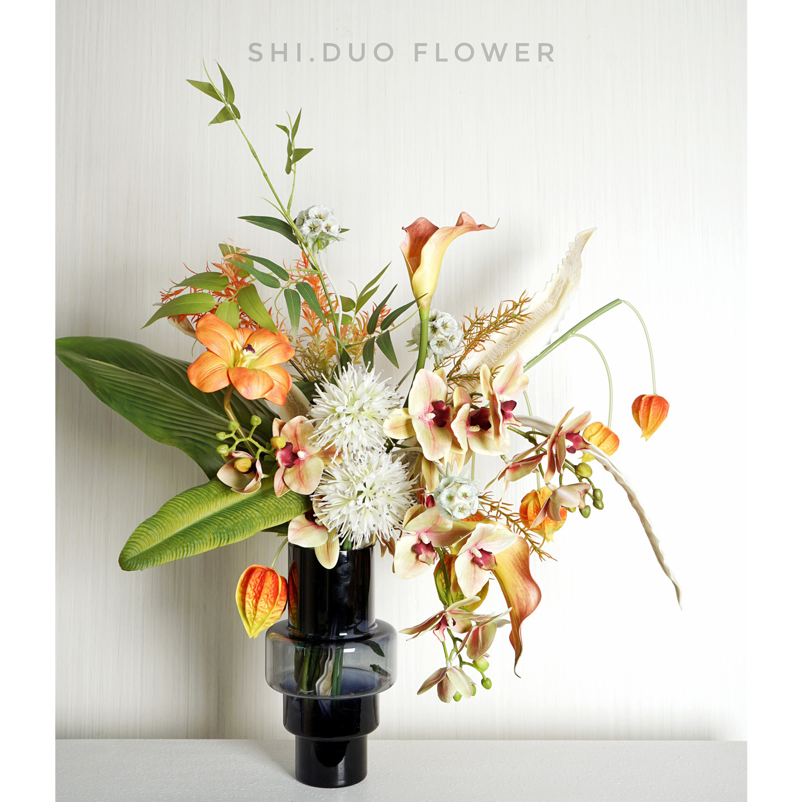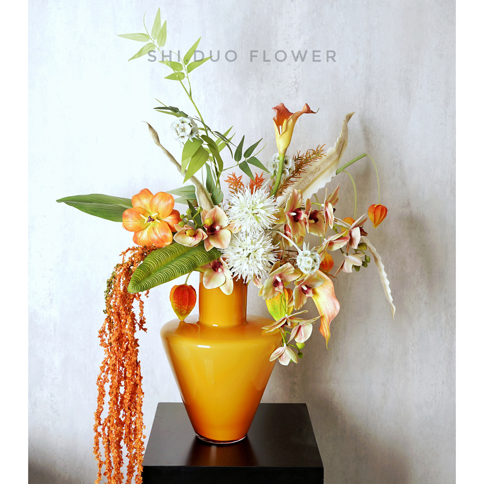 现代轻奢橙色组合家居仿真花艺样板房客厅玄关茶几软装饰品