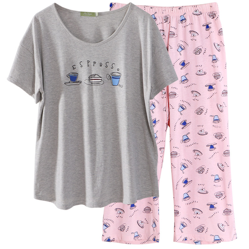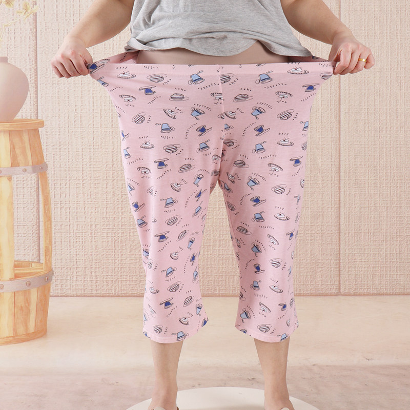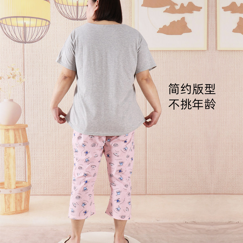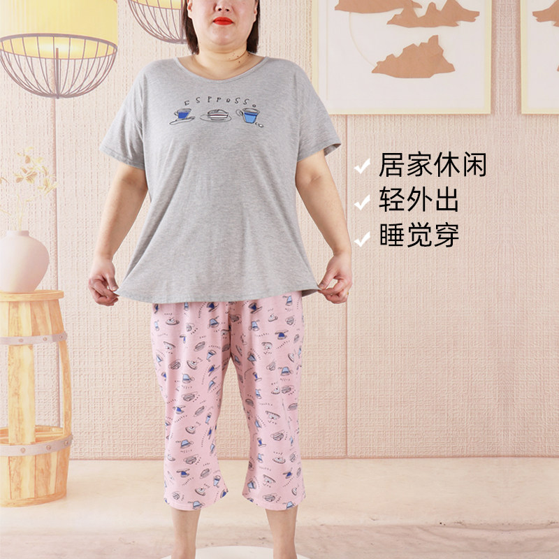 胖mm200斤加大码睡衣套装春夏短袖七分裤女士棉质加肥宽松家居服