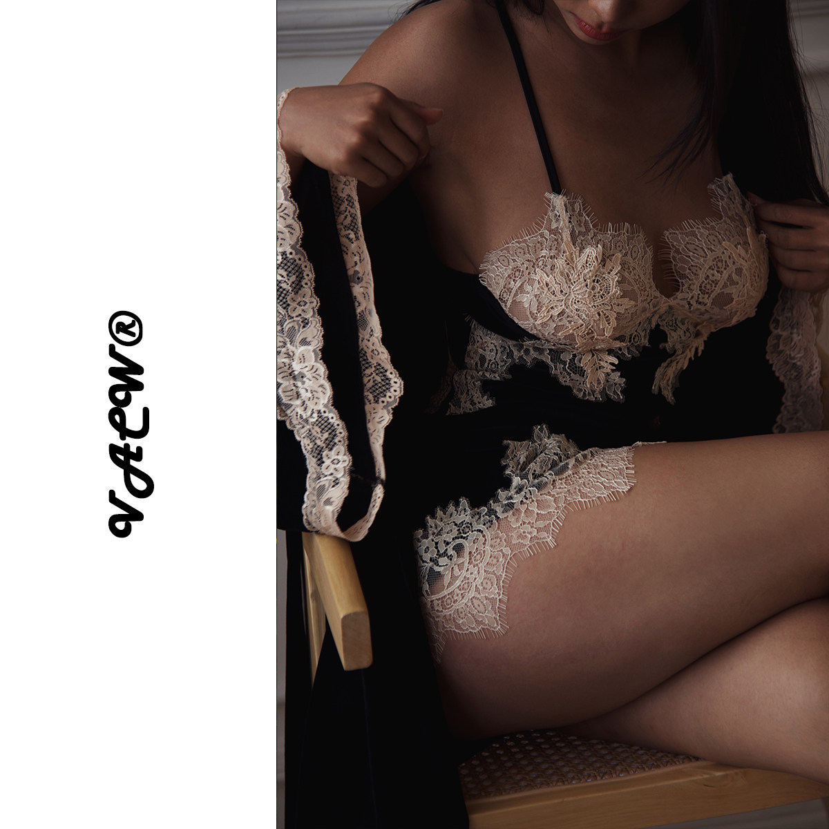 VACW舒适蕾丝高级感吊带睡裙浴袍