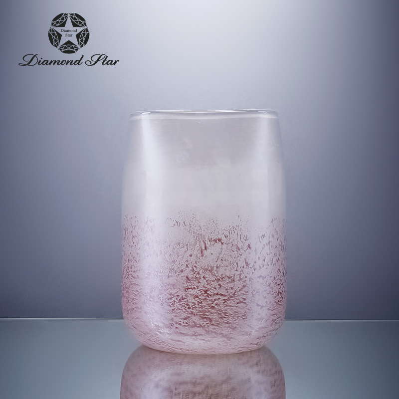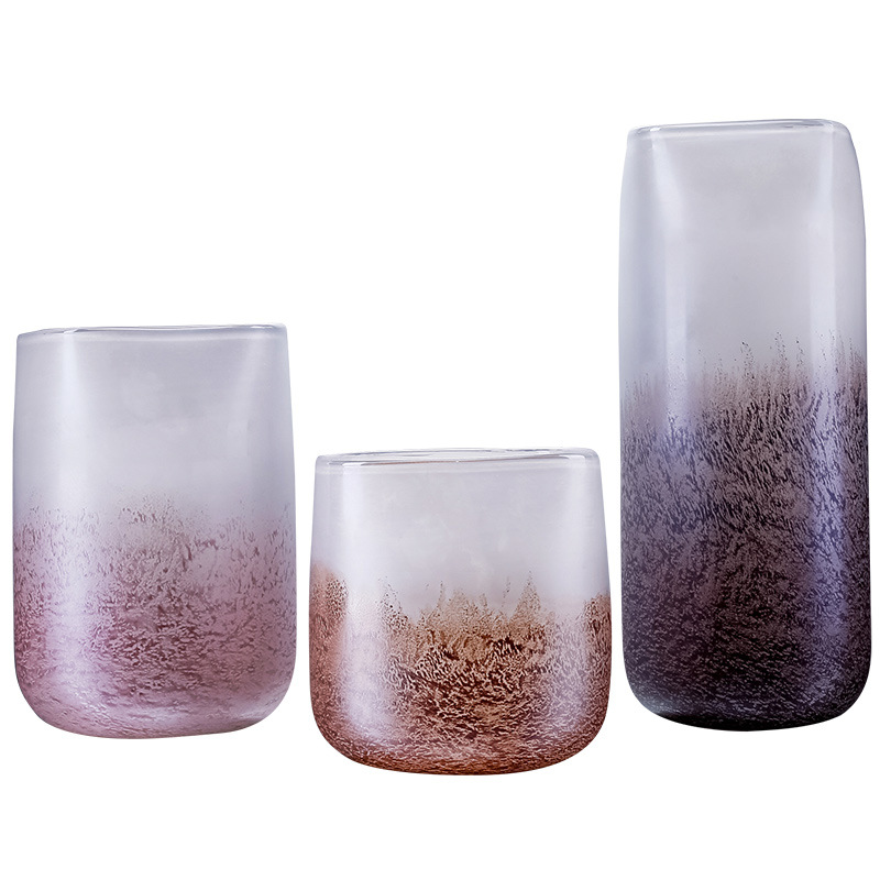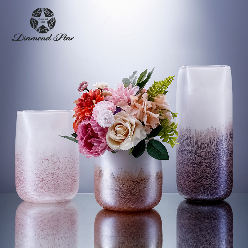 极速渐变粉色仿瓷j大口直筒花瓶玻璃插花器 家居装饰摆件轻奢花瓶