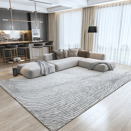 现代简约客厅地毯卧室家用轻奢地毯北欧线条ins加厚地毯垫可机洗