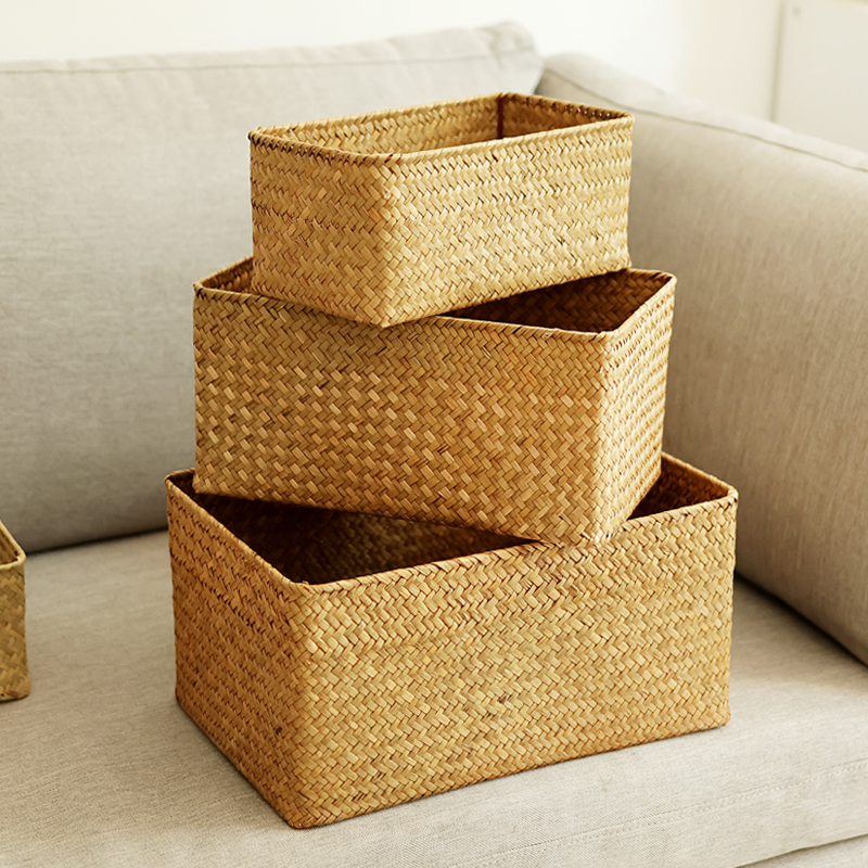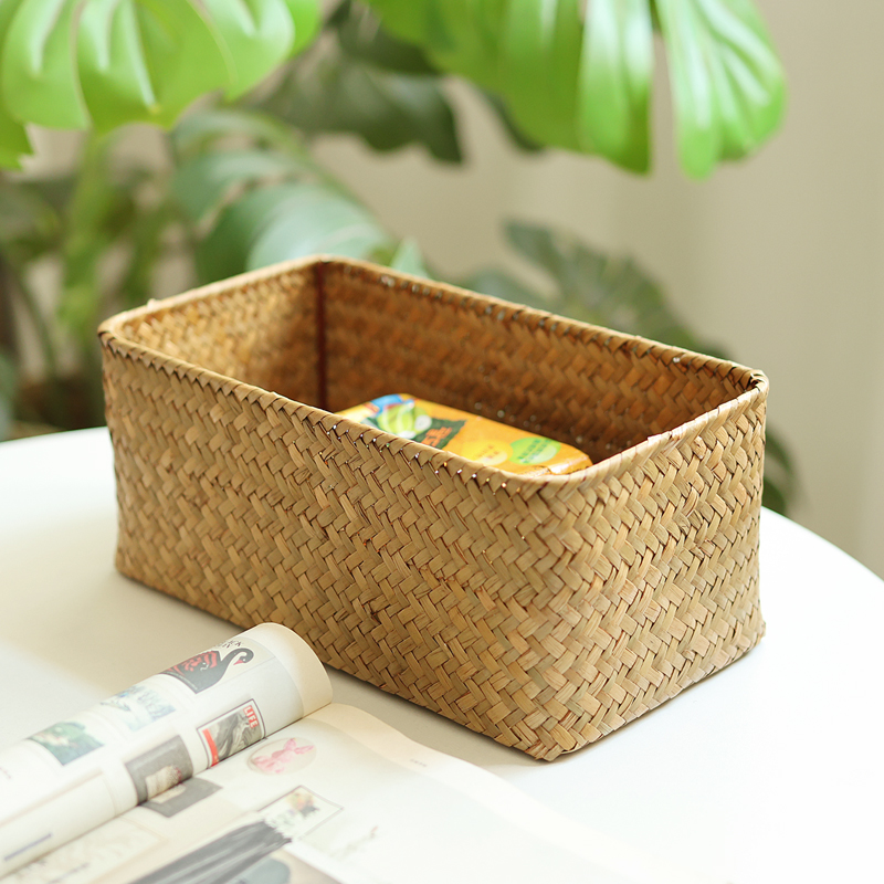 海草编织收纳筐复古藤编储物篮草编筐竹编篮杂物编织置物筐长方形