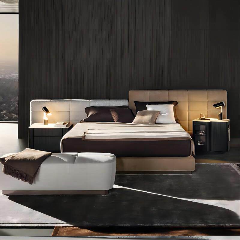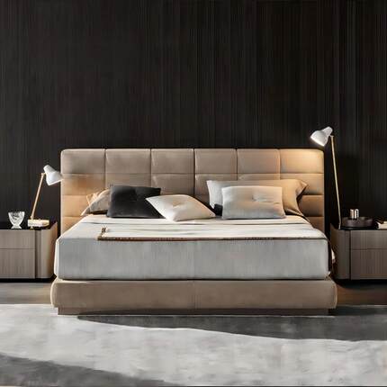 意式极简劳伦斯磨砂布床卧室别墅大平层设计师奶油风1.8双人婚床
