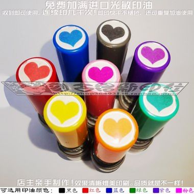 红心印章蓝黑紫绿玫红橙黄色爱心印章免印泥自出油按万次印章10mm