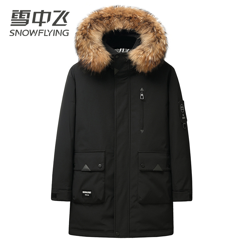 雪中飞羽绒服男士中长款冬季户外貉子毛领加厚外套极寒连帽派克服