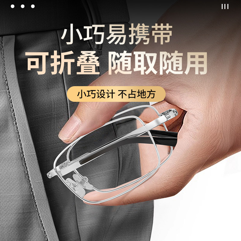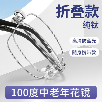 折叠老花眼镜男式小巧易携带高清新款高级纯钛超轻型中老年100度