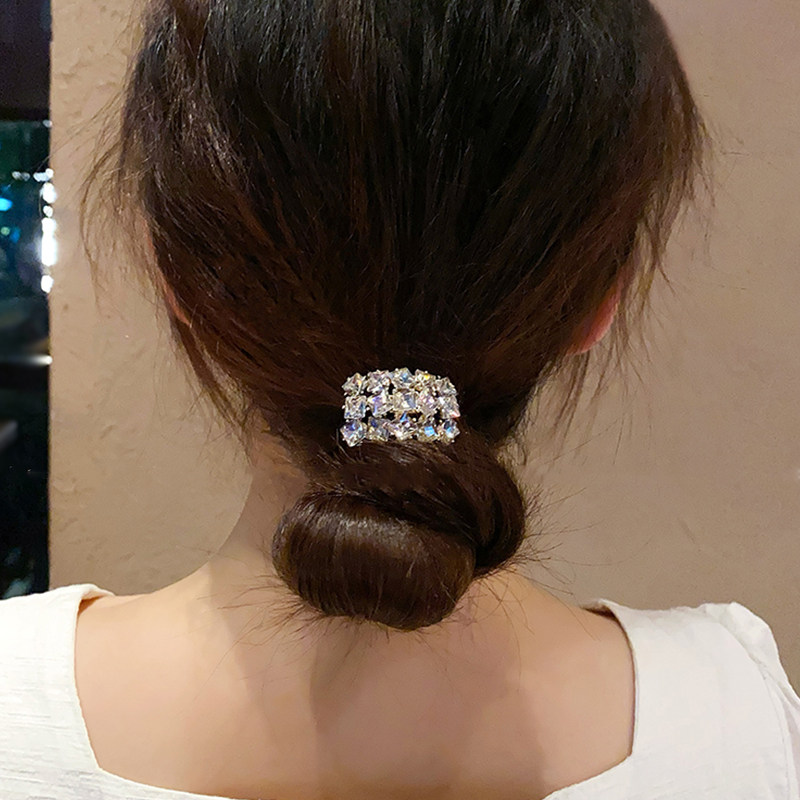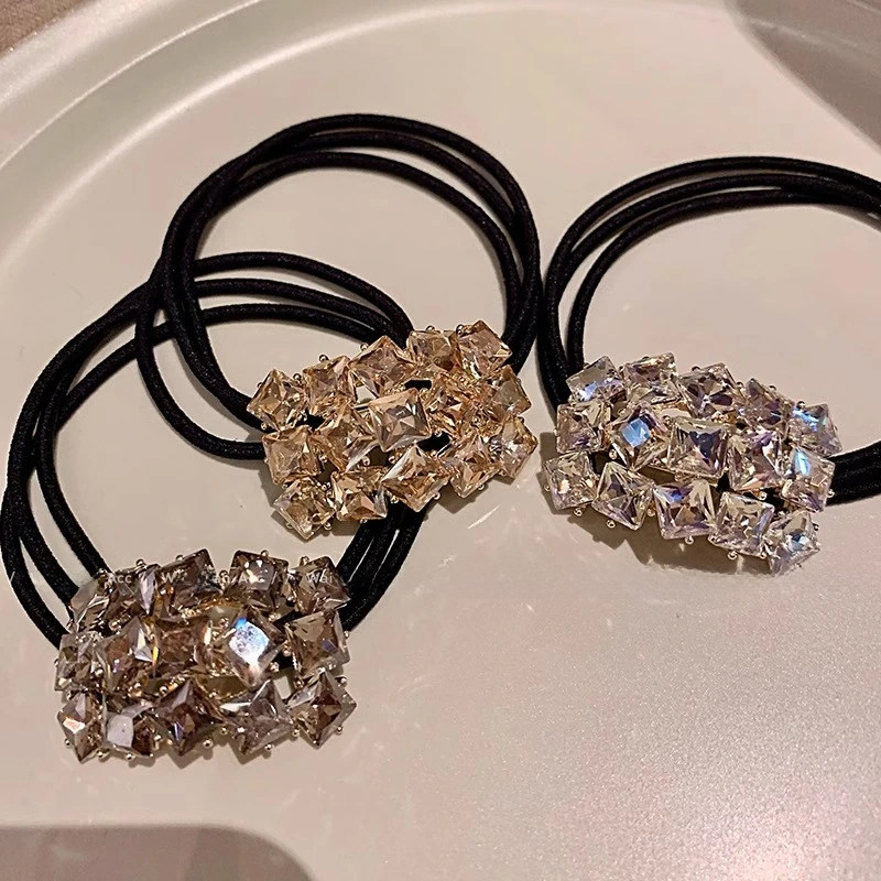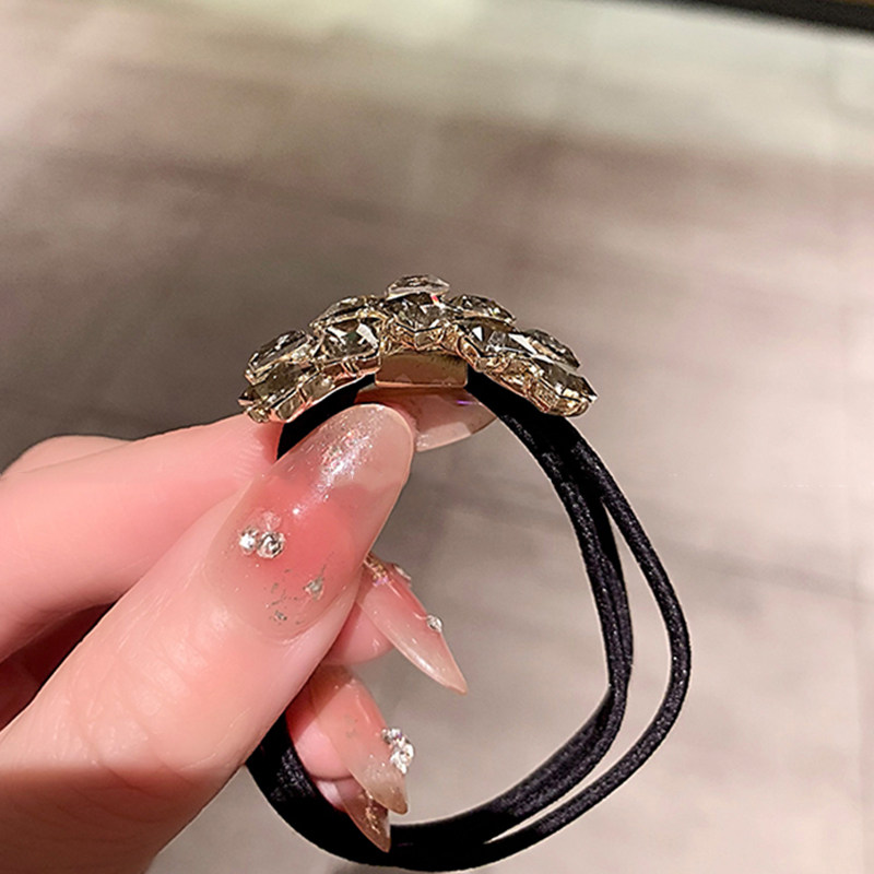 水钻发圈满钻方块丸子头专用头绳韩国气质进口皮筋女扎头黑色发绳