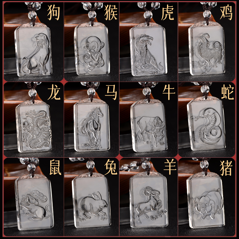 天然白水晶吊坠男女十二生肖鸡龙本命年礼物钥匙扣挂件守护神项链