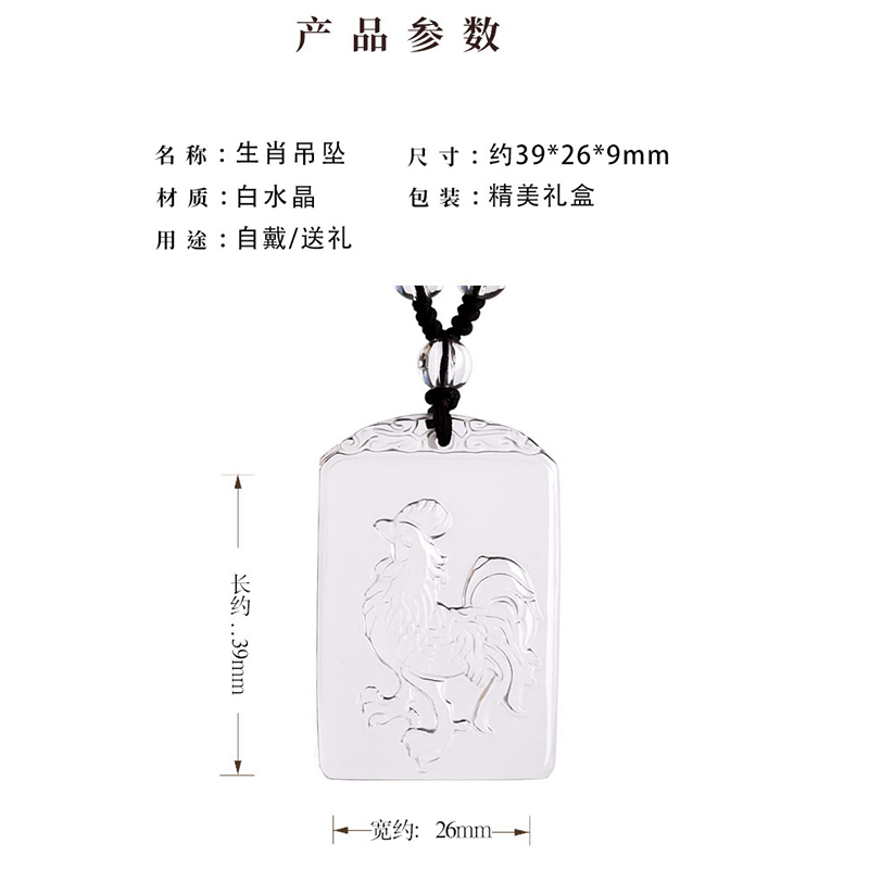 天然白水晶吊坠男女十二生肖鸡