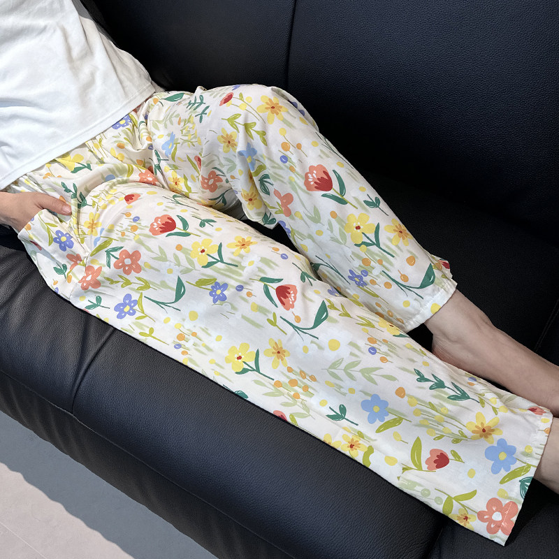 夏季人棉凉凉裤人造棉女裤长裤棉绸印花哈伦裤九分薄绵绸休闲宽松
