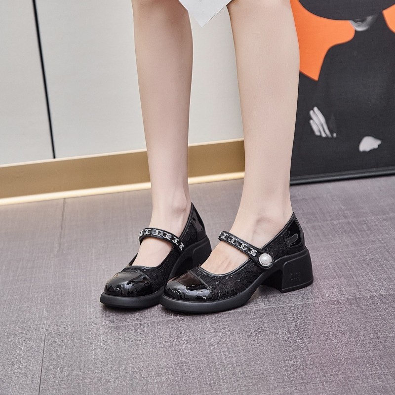卡晶妮2025新款夏季粗跟方头露趾简约法式高跟鞋仙风外穿凉鞋漆皮
