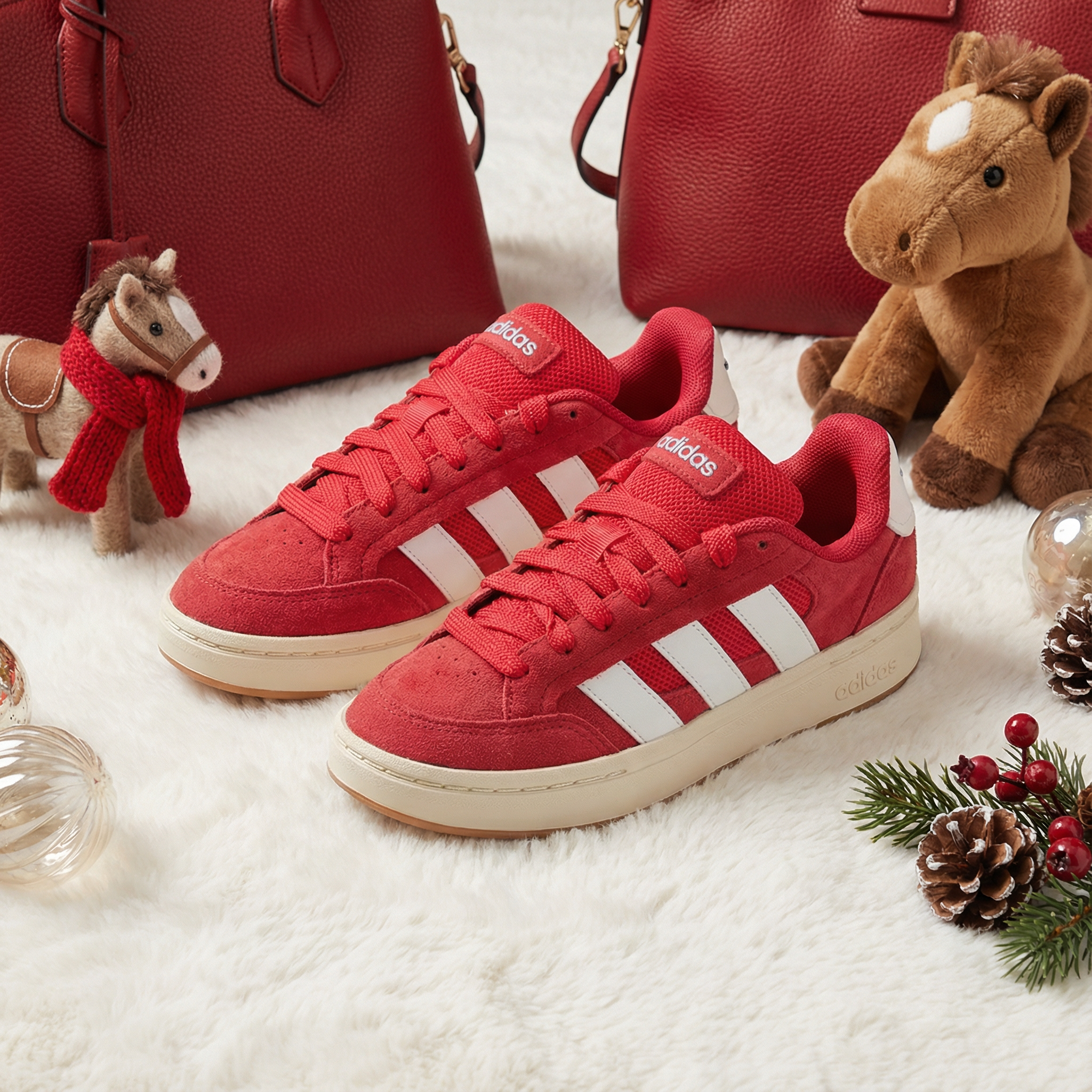 阿迪达斯女鞋新年款红色板鞋休闲鞋2025冬季婚鞋厚底运动鞋HQ7374