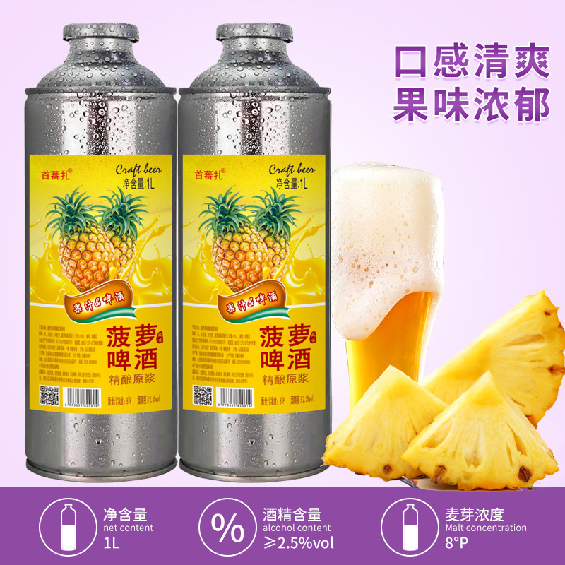 青岛首蕃扎果味原浆啤酒百香果菠萝全麦果味精酿啤酒1升装清爽
