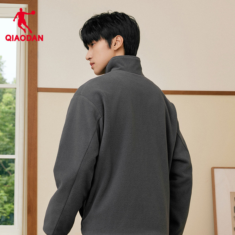 乔丹冬季新款抓绒运动外套男士防泼水摇粒绒保暖加绒开衫上衣双面