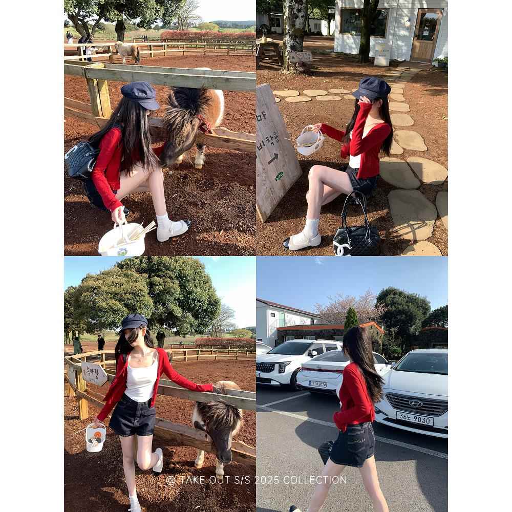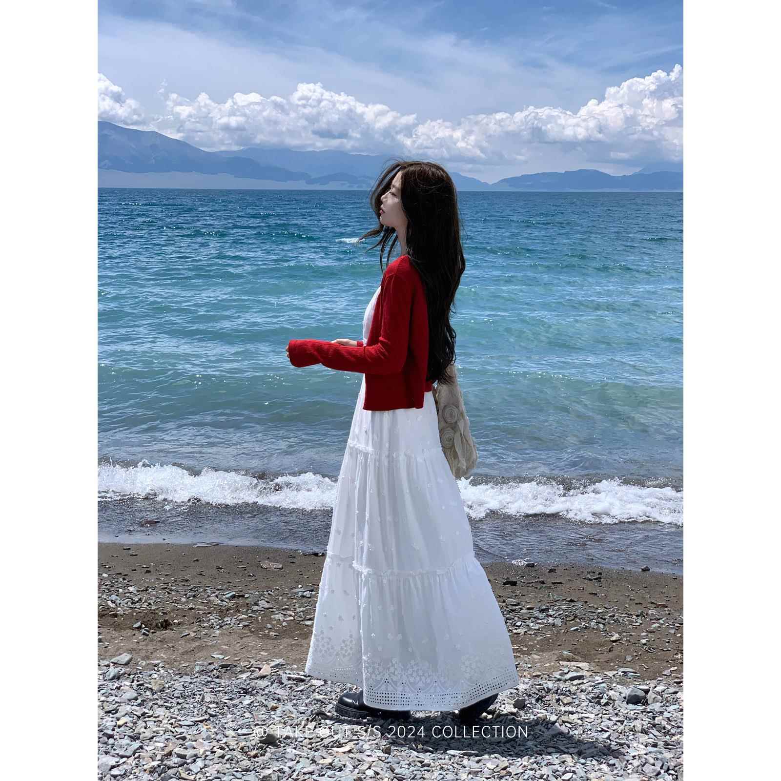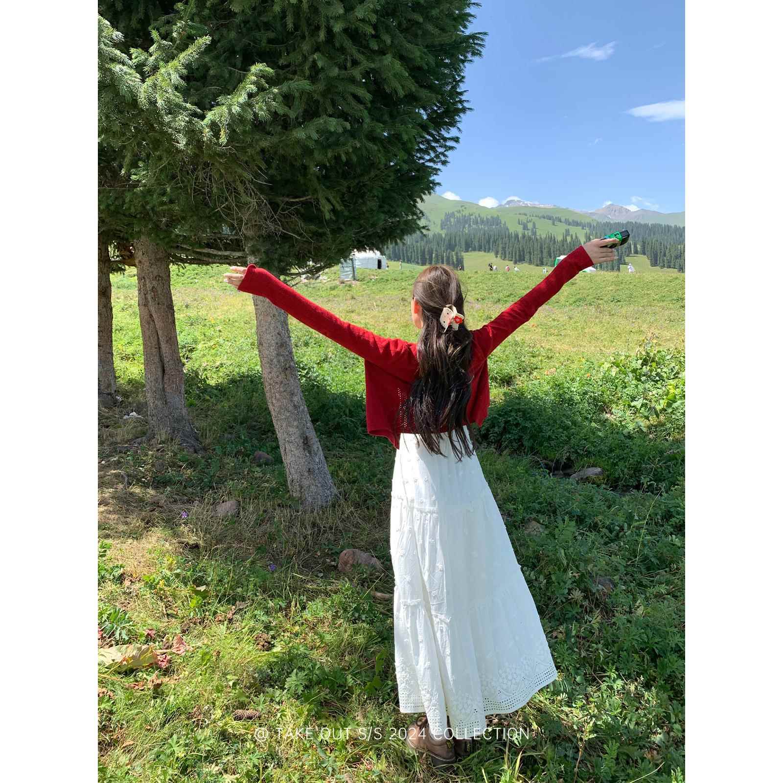 外卖到了【红扑扑】红色镂空短款针织开衫女秋季显瘦上衣防晒穿搭
