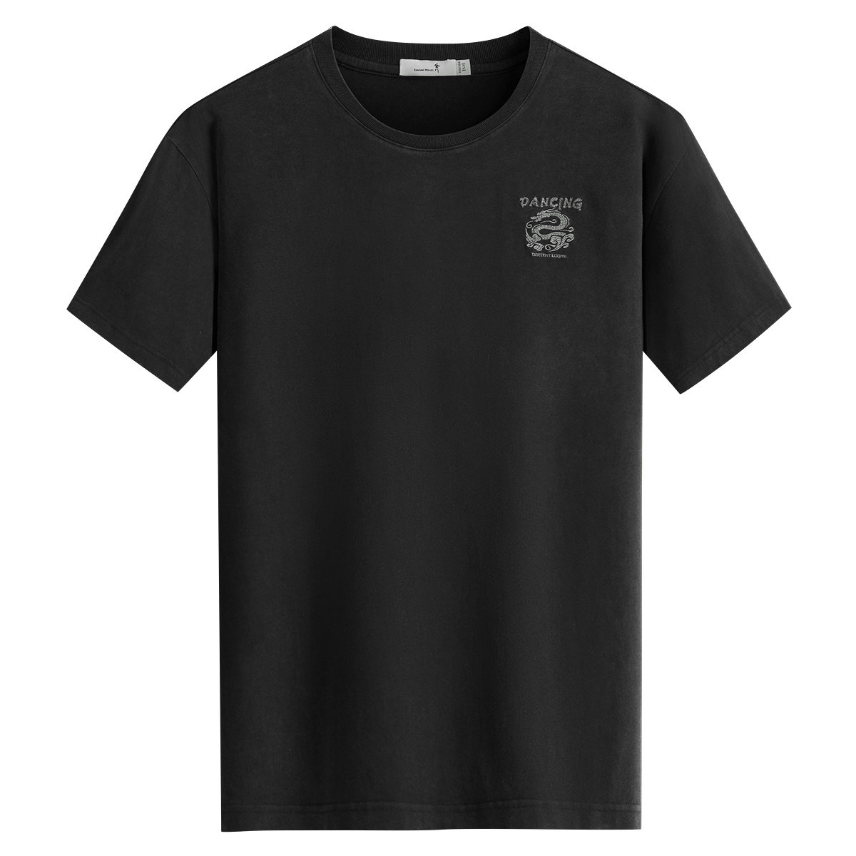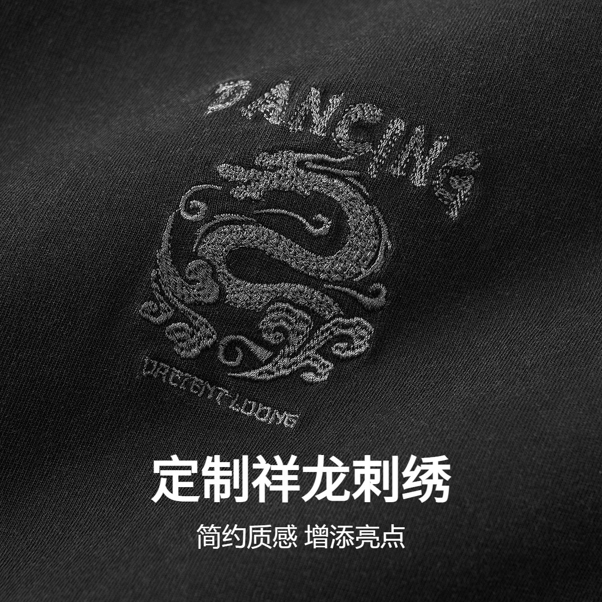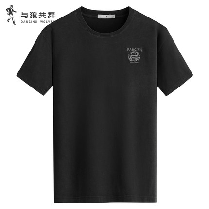 与狼共舞短袖祥龙刺绣纯棉T恤男