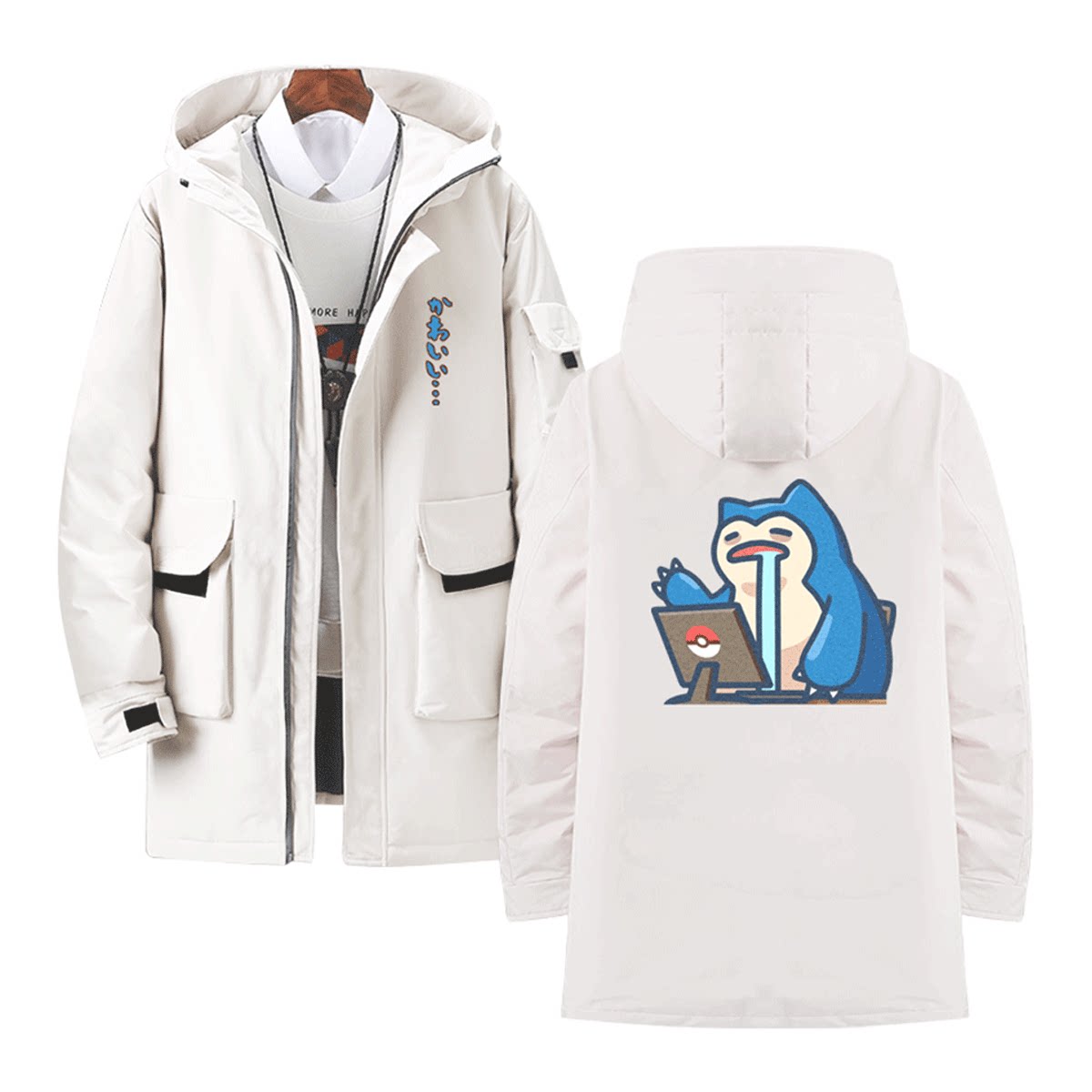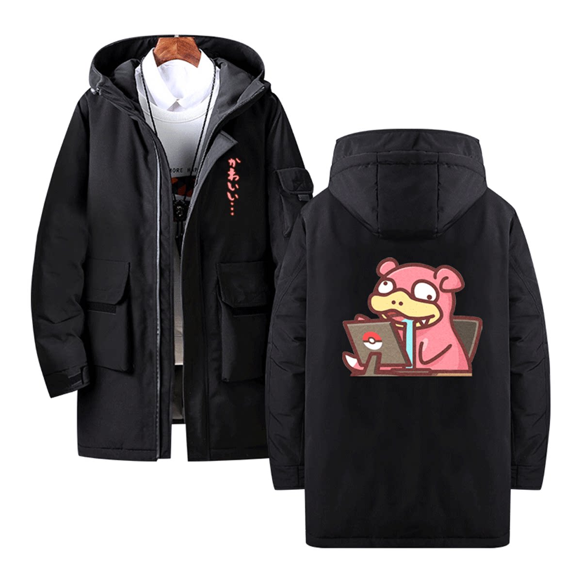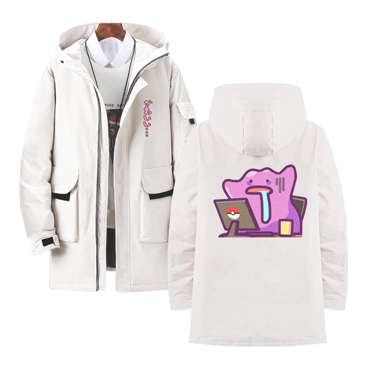 宝可梦周边百变怪可达鸭卡比兽上班族男女情侣可定制中长款羽绒服