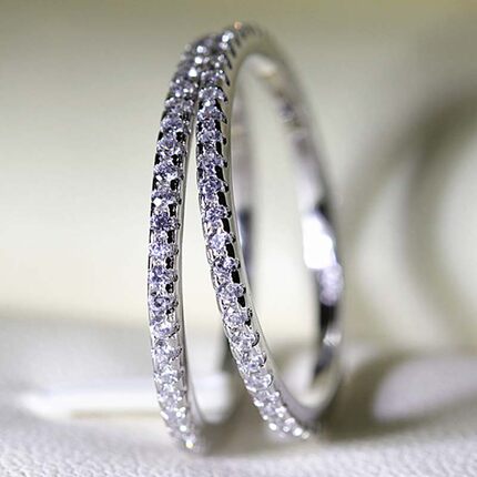 s925纯银个性小众设计满圈白锆石戒指女欧美叠戴尾戒食指指环饰品