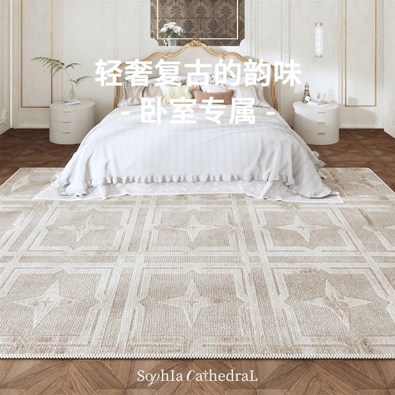 N 复古卧室床边地毯客厅沙发茶几毯级感床前中古风防滑地垫