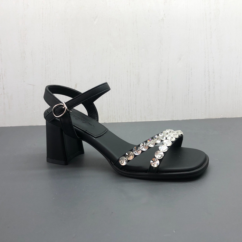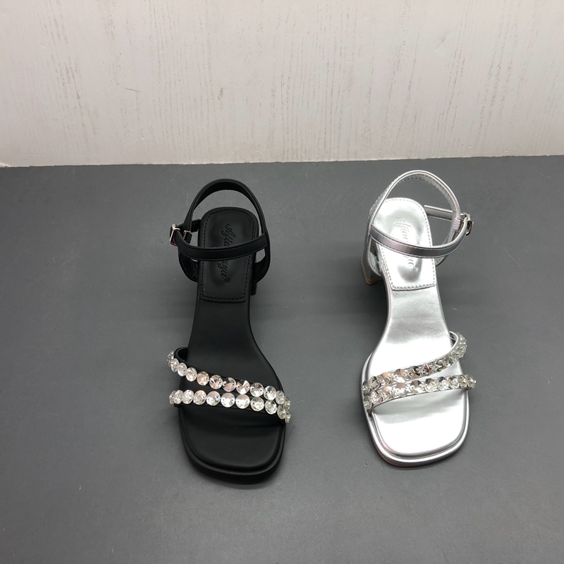 工厂新款断码女鞋夏季高跟鞋时尚舒适显瘦露趾粗跟一字扣女凉鞋