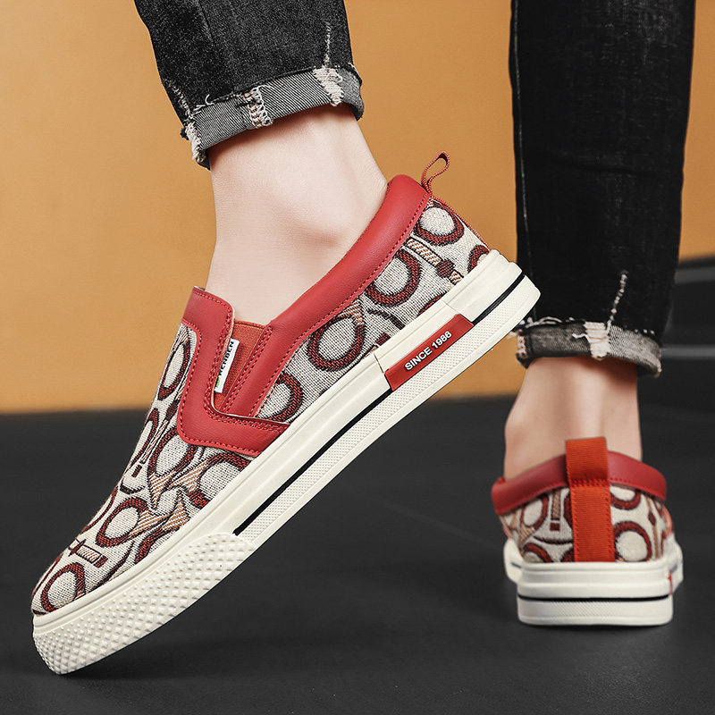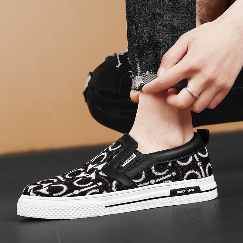 人本官方店中国风男帆布鞋2025春夏新款百搭一脚蹬休闲鞋软底板鞋
