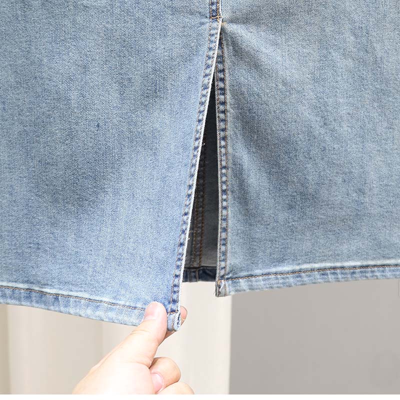 夏季新款高腰中长款牛仔裙女2025宽松显瘦后开叉半身裙微弹A字裙