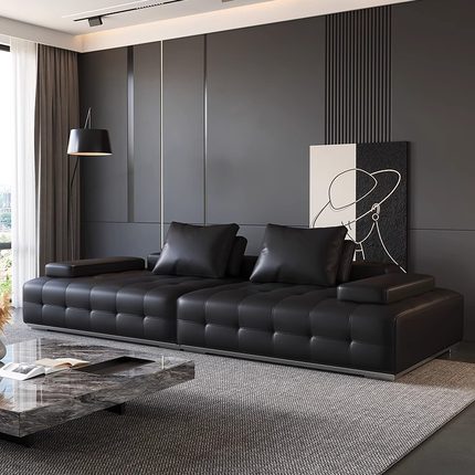 劳伦斯意式极简黑色直排真皮沙发