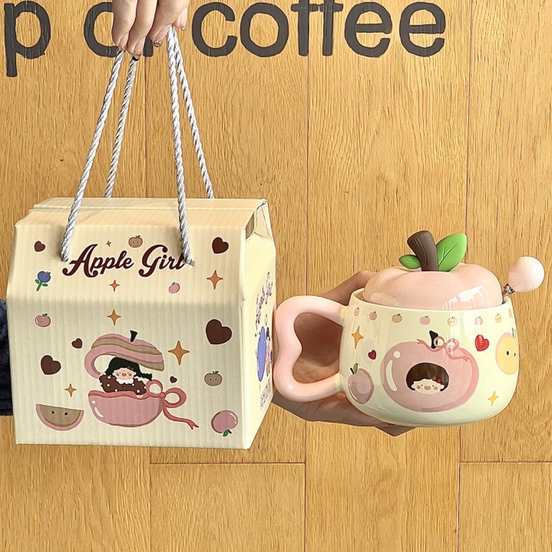 可爱创意女孩陶瓷水杯生日礼物高颜值马克杯带盖情侣办公室咖啡杯