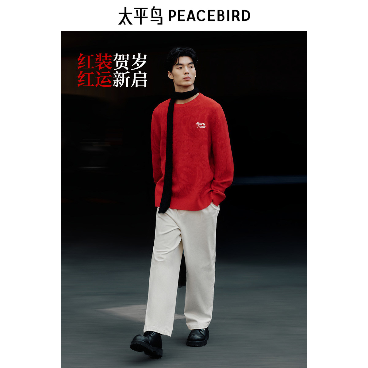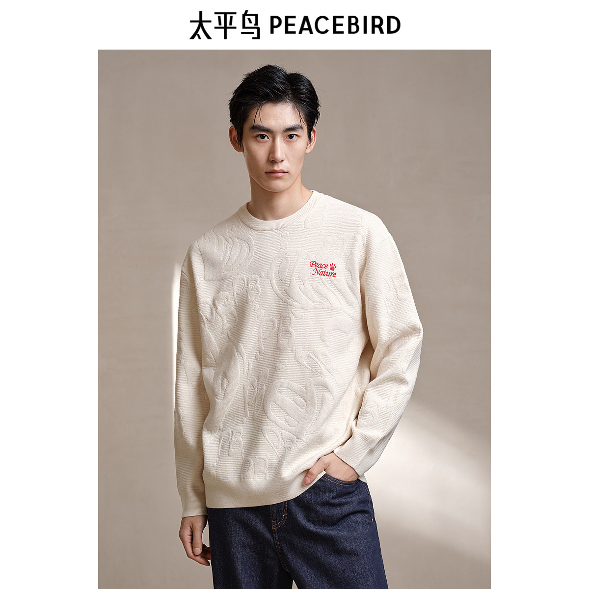太平鸟男装休闲毛衣25春季新款暗纹肌理羊毛衫男针织衫BAEBF1188