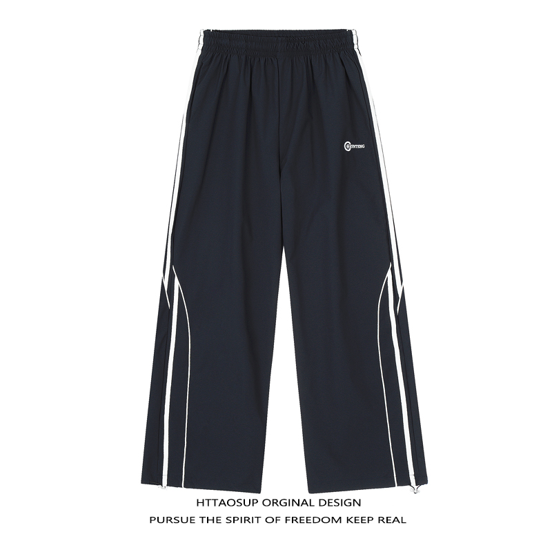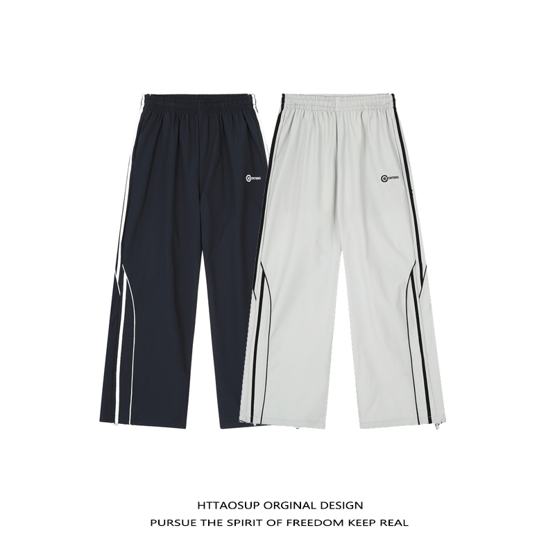 HTTAOSUP美式复古裤子男女款秋季直筒宽松灰色休闲运动裤梭织长裤