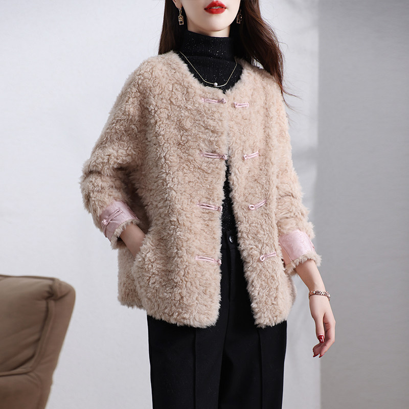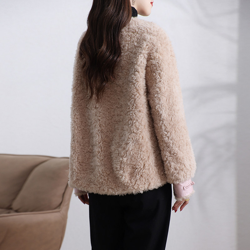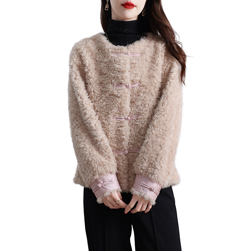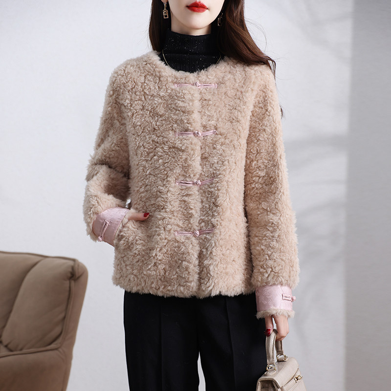 新款海宁颗粒绒皮草外套女短款甜美一体保暖新中式羊羔毛大衣冬季
