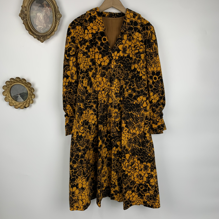 vintage古着日制羊毛连衣裙女士长款长袖复古森系气质秋冬长裙511