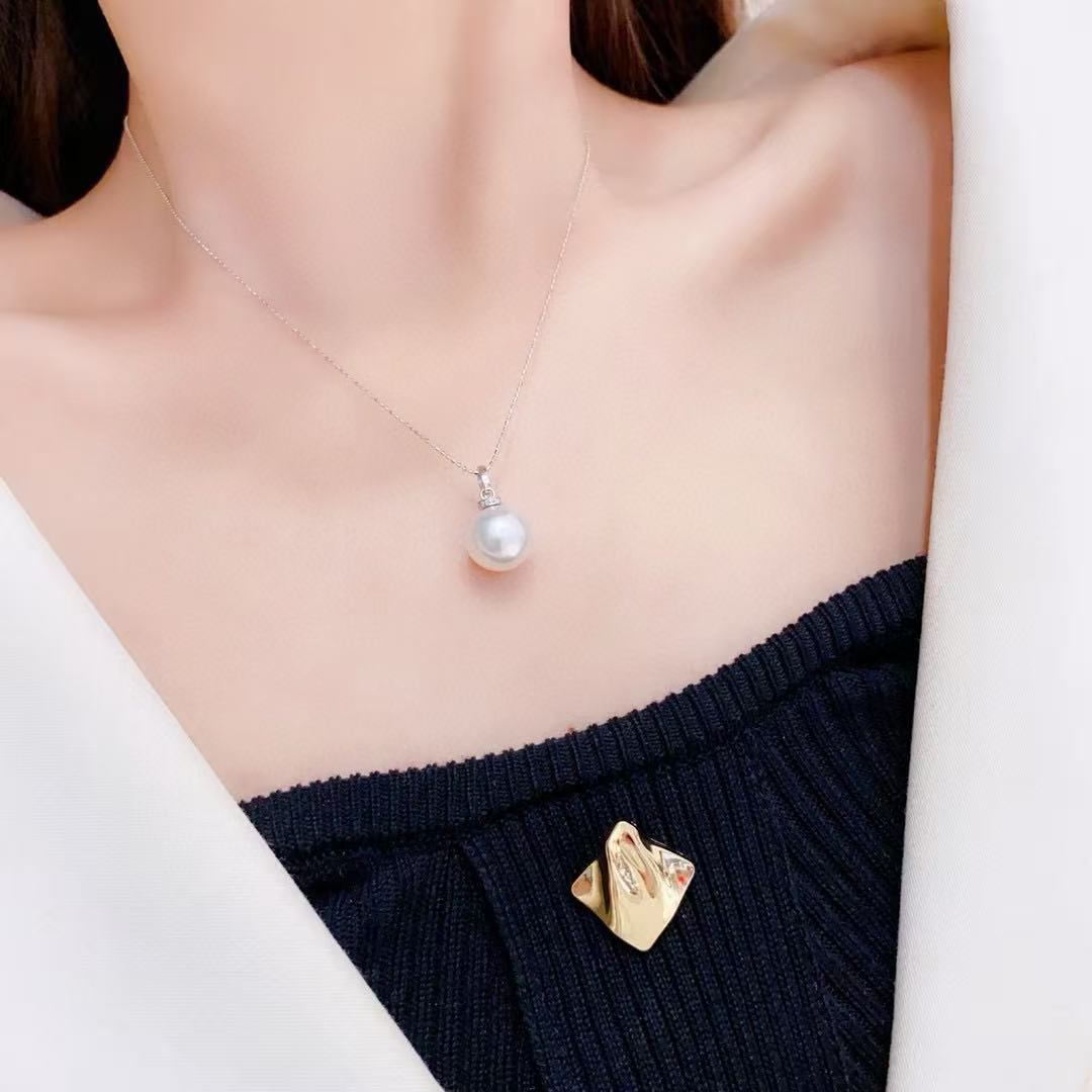 18k金钻石10-15mm淡水珍珠吊坠配件百搭万能扣头设计裸珠diy空托