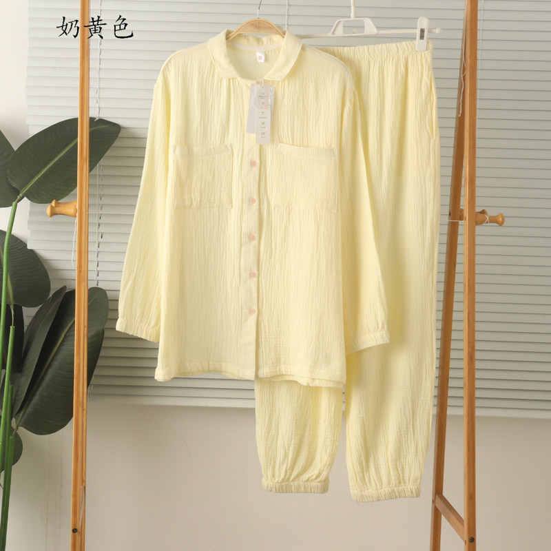 女纯棉纱布绉棉长袖长裤睡衣春夏