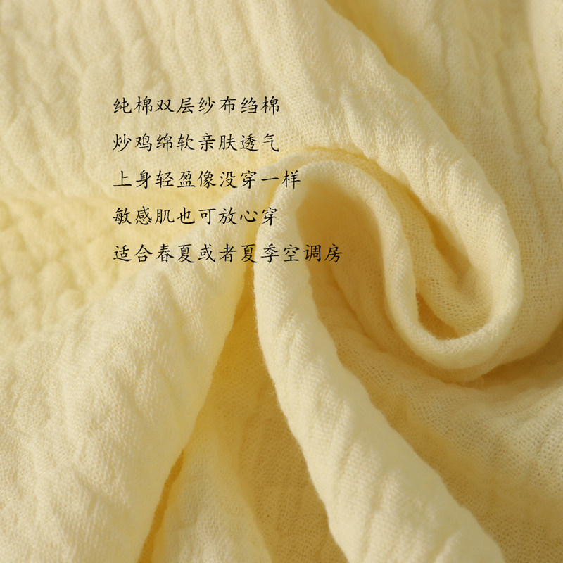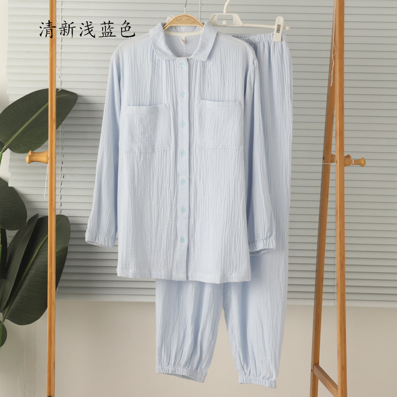 女纯棉双层纱布绉棉薄款长袖长裤睡衣家居服套装春夏空调房全棉